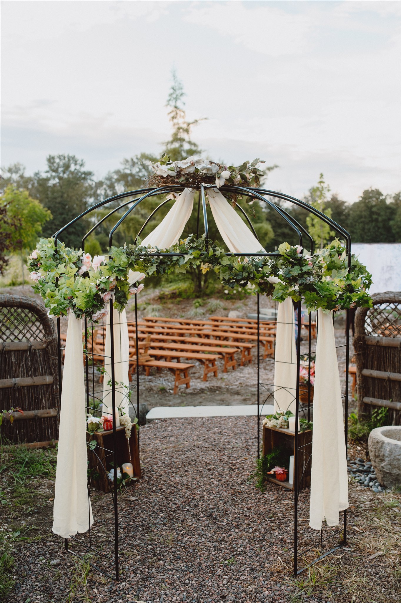 With seating on rustic wooden benches for 200 guests, the
